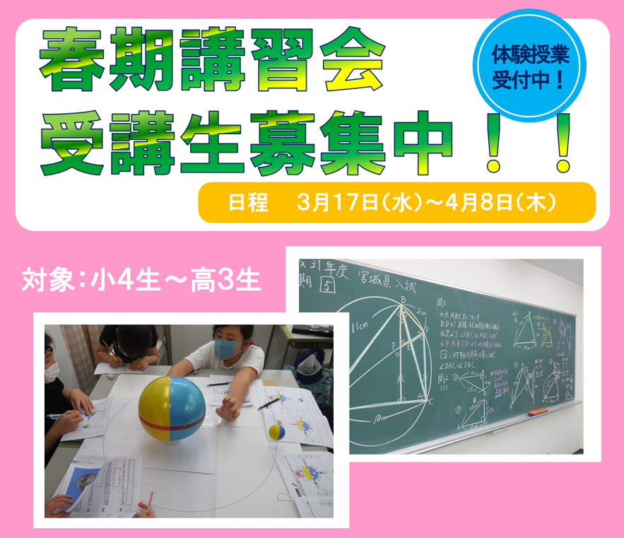 春期講習会開催中! 3月17日(水)~4月8日(木) 練磨の春!進化の春!! 春 […]